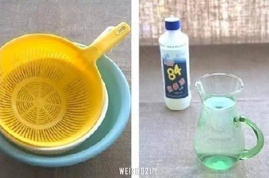 ▌將84消毒液和清水,以1:200的比例兌在一起,將需要“換膚”的塑料制品放入,浸泡兩個小時。再用清水反復(fù)沖洗干凈就可以了,效果好又不會產(chǎn)生任何腐蝕作用,浸泡過塑料框的水還可以倒入馬桶中,還能起到清潔馬桶的作用。
