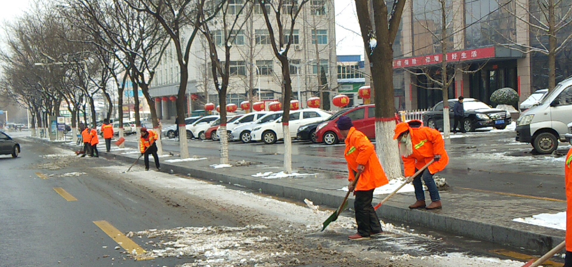 新年的第一場大雪,到處銀裝素裹,扮美了整個晉城,但大雪帶來美景的同時,也給大家的出行帶來了不便。為保障大雪期間出行安全,潔霸公司各保潔點的負(fù)責(zé)人積極組織員工進(jìn)行主干道積雪清掃,在除雪過程中,雖然天氣寒冷,但大家除雪的熱情卻不減,大家有的撒融雪劑,有的 清掃積雪,有的用鏟子除冰,奏響鏟雪破冰進(jìn)行曲。
