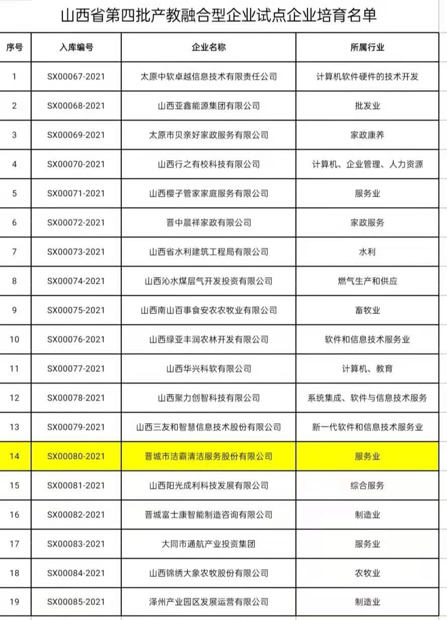 按照遴選培育原則和程序,通過企業(yè)基礎(chǔ)資料初審、“互聯(lián)網(wǎng)+現(xiàn)場”答辯、專家組評審等工作,遴選確定晉城市潔霸清潔服務(wù)股份有限公司納入省級建設(shè)培育庫。