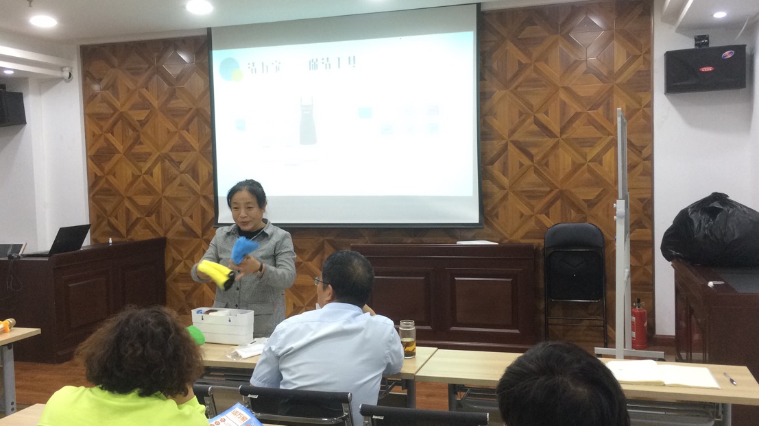 隨后由公司人力資源部負責人司夢琴對“潔萬家”日常保潔產(chǎn)品進行了分類介紹,此外還介紹了產(chǎn)品推廣獎勵方案和推廣話術,對大家日后推廣過程中會遇到的客戶提出的各種問題進行了預設并一一詳細作答。