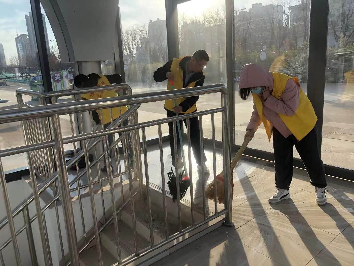 12月20日——22日,潔霸志愿者走進金鳳凰廣場和西街泰森社區(qū),開展衛(wèi)生清潔志愿服務(wù)活動;顒又校麄兩泶S色馬甲,手拿笤帚、拖布、夾子等清理工具,有的清掃地面;有的拖洗樓梯;有的擦洗欄桿;有的撿拾煙頭、紙片;有的規(guī)范車輛擺放,以實際行動參與到文明創(chuàng)建行動中來,全力支持我市創(chuàng)文迎檢工作,爭做創(chuàng)文的宣傳者、踐行者、守護者。
