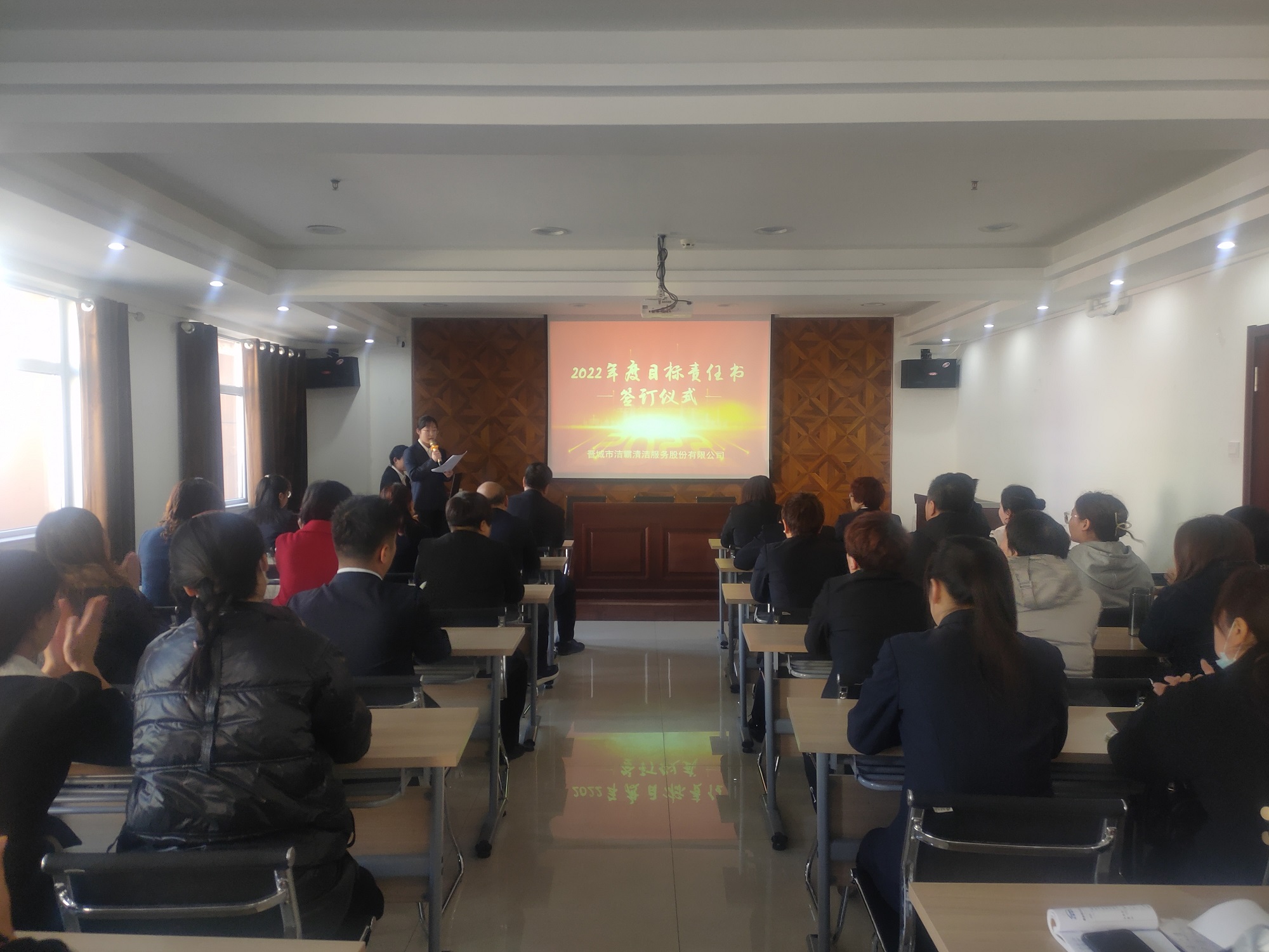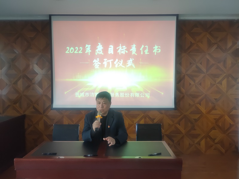 為落實公司2022年工作會議精神,進(jìn)一步壓實責(zé)任,確保年度工作目標(biāo)的順利完成, 3月1日下午,晉城市潔霸清潔服務(wù)股份有限公司在活動中心組織召開2022年度目標(biāo)責(zé)任書簽訂會議。公司黨支部書記、總經(jīng)理程晉軍,副總經(jīng)理張永智、史志霞,經(jīng)理助理,各子公司、分公司、部門經(jīng)理及項目負(fù)責(zé)人、主管等參加會議。