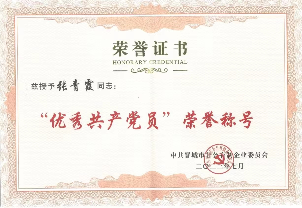 7月5日上午,市非公企業(yè)黨委慶祝建黨102周年暨“兩優(yōu)一先”表彰大會在在市市場監(jiān)管局7樓會議室舉行。公司黨支部榮獲“先進基層黨組織”榮譽稱號,黨支部副書記張小梅被評選為“優(yōu)秀黨務工作者”,紀檢委員張青霞被評選為“優(yōu)秀共產黨員”。